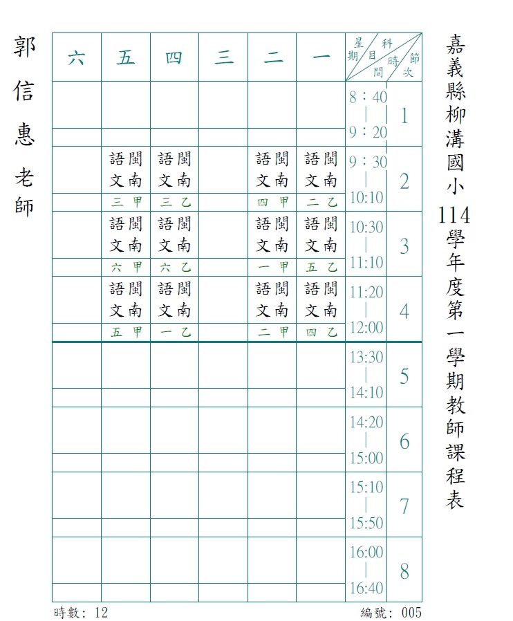 請上傳全校本土課程表部分即可,其他領域請刪勿呈現